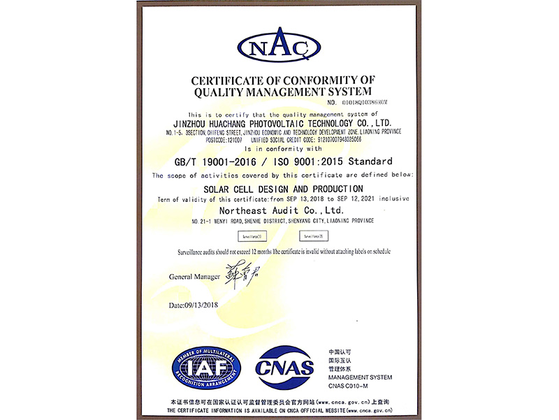 品質(zhì)管理體系認(rèn)証証明書(shū)(中國(guó)語(yǔ))