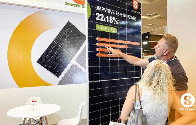 作為全球知名光伏組件制造商,陽光能源在本次大會上向來自全球的業(yè)界翹楚展示了我司的先進技術(shù)和創(chuàng)新產(chǎn)品。陽光能源3款Giga-P系列組件面向當(dāng)?shù)卮笮偷孛骐娬镜葢?yīng)用場景,量產(chǎn)功率最高可達670W;此外,陽光能源還展示了1款 Giga-N系列78片雙玻組件產(chǎn)品,以更高效、更前沿的組件特性,俘獲大批觀眾駐足欣賞。展會現(xiàn)場,陽光能源還與當(dāng)?shù)鼗锇楣餐接懥四戏枪夥a(chǎn)業(yè)發(fā)展新機遇。