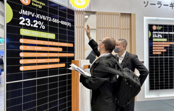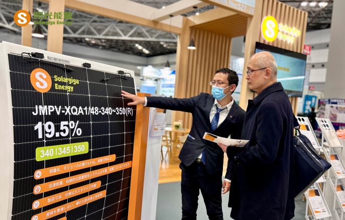 本次展會(huì),陽(yáng)光能源集中展示了公司的前沿技術(shù)和先進(jìn)的光伏組件產(chǎn)品,5 款展品高度契合以小型項(xiàng)目為主導(dǎo)的日本光伏市場(chǎng)需求。其中一款 Giga-N 系列 48 片輕質(zhì)雙玻戶用光伏組件,采用了 N型TOPCon 電池技術(shù)搭載 210R 矩形硅片,極大地提升了發(fā)電效率,組件轉(zhuǎn)換效率提升到 23.0% ,即便在弱光環(huán)境下也能高效運(yùn)作;在外觀設(shè)計(jì)方面,打造更加簡(jiǎn)約時(shí)尚的全黑外觀,適用于各類建筑風(fēng)格。