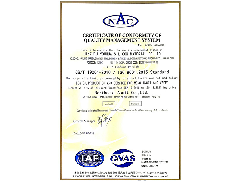 質(zhì)量管理體系認(rèn)證證書(英文)