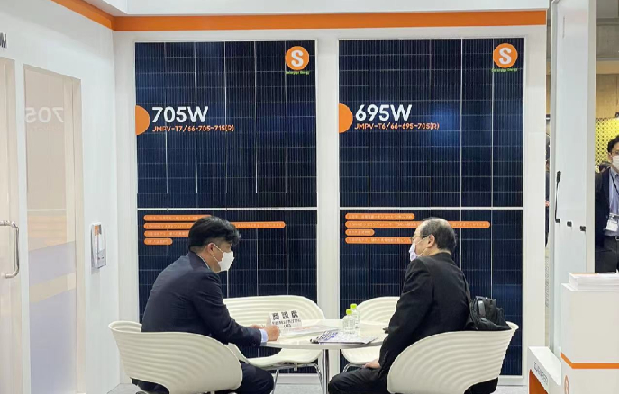 其中旗艦產(chǎn)品210NHJT單玻半片組件功率最高可達(dá)705W,效率更是突破23.02%,可為日本市場帶來更加高效、高能的全新體驗,並擁有5-10倍的IEC標(biāo)準(zhǔn)檢測,以及優(yōu)異的抗PID性能;210NTOPCON單玻半片組件采用66片設(shè)計,功率達(dá)到695W,作為成熟市場的優(yōu)質(zhì)之選,可提供12年質(zhì)量保證和30年發(fā)電效率保證。除此之外,其他4 款差異化的產(chǎn)品也獲得了眾多觀眾的青睞。